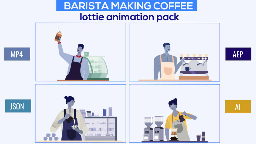 - Animation of four baristas preparing coffee